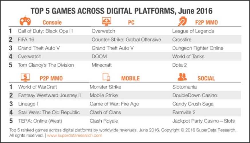 According to the latest global digital gaming market report from SuperData, Overwatch maintained its dominance on PC throughout June, reaffirming its strong player base and revenue generation. Meanwhile, Grand Theft Auto Online continued to lead both PC and console charts, demonstrating its widespread popularity across platforms.